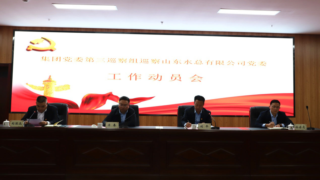 按照集团党委统一部署,集团党委第三巡察组自2021年10月11日起进驻公司开展为期20天的巡察工作。10月11日上午,在公司二楼多功能厅召开巡察工作动员会。集团党委巡察工作领导小组成员、巡察办主任辛春,集团党委第三巡察组组长刘平,副组长孙启亮及巡察组其他成员,山东水总有限公司领导班子成员及中层正副职干部及党员、职工代表等出席会议。会议由公司党委书记、董事长刘深远主持。