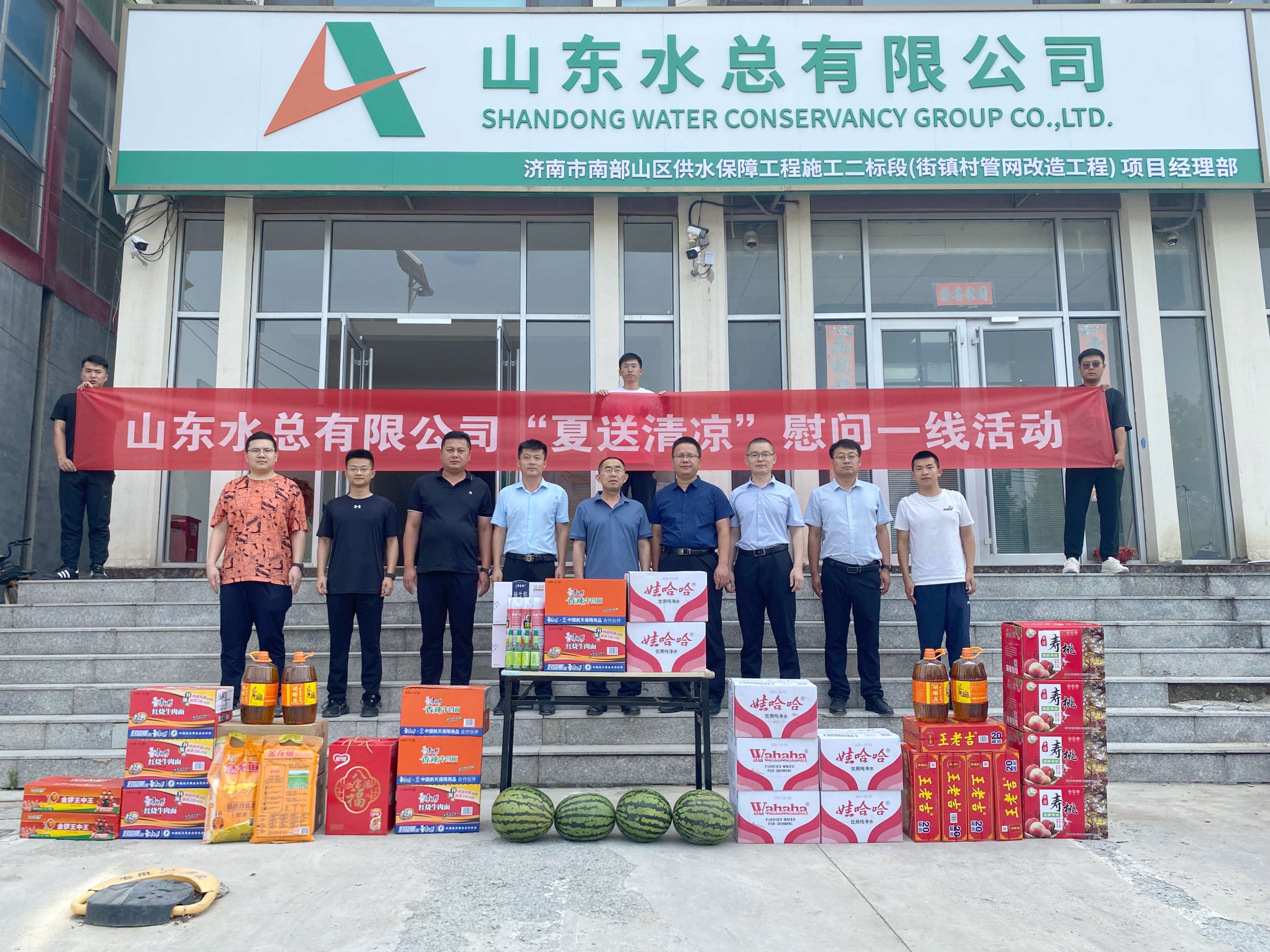 公司党委委员、副总经理袁英杰一行到基础有限公司济南市南部山区供水保障工程项目开展“夏送清凉”活动