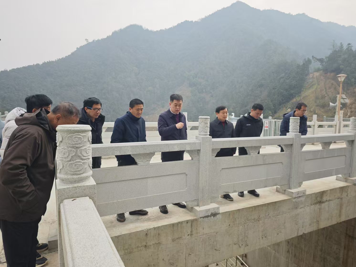 近日,黄山市歙县发改委党组书记张冬春带队赴双溪口水库开展交流参观活动,黄山市歙县投资促进局局长江焘、水利局局长金自立参加活动,杭州鲁润公司负责人陪同。